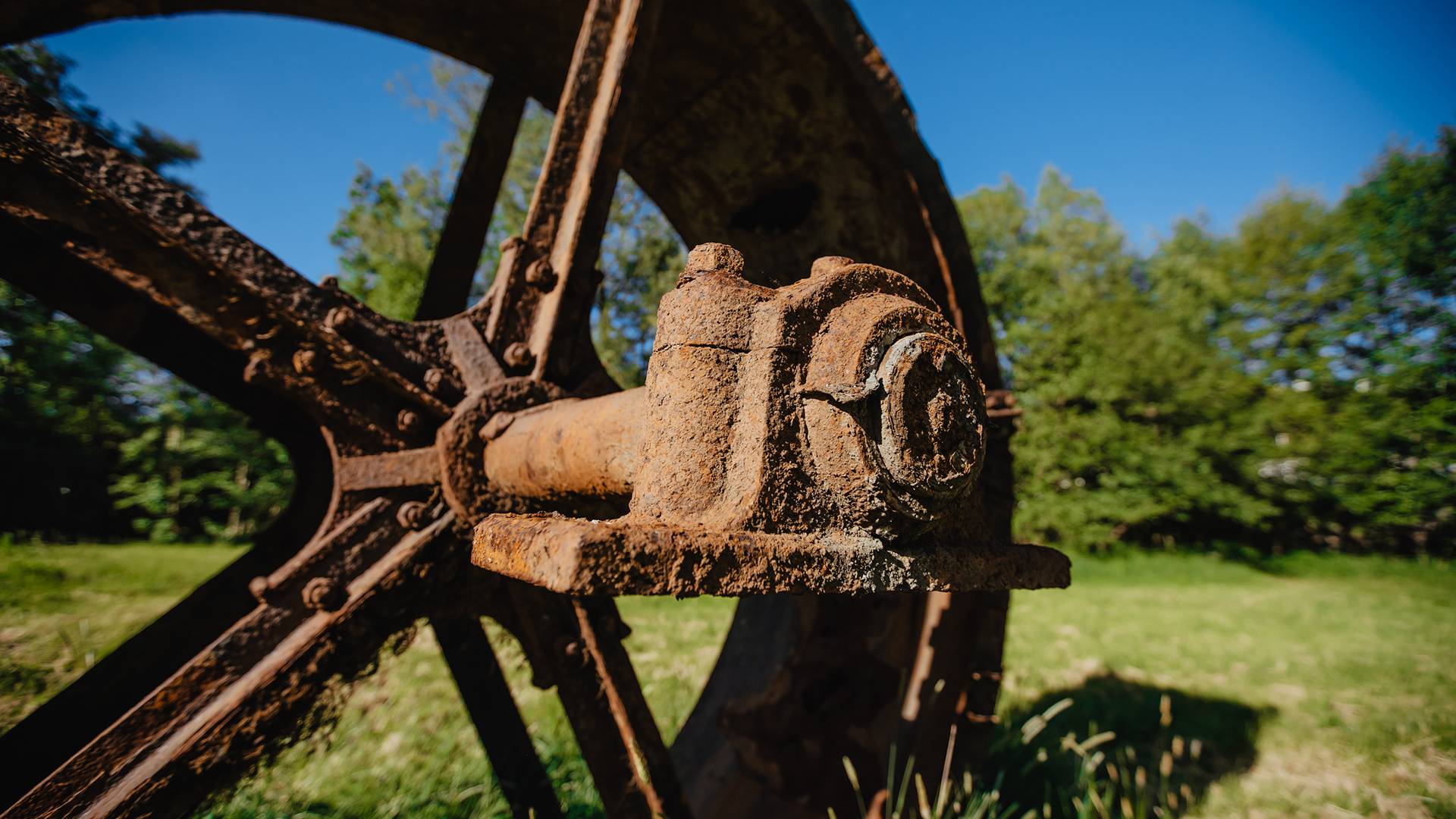 Das alte Mühlrad konnte unter großem Einsatz der Mitarbeiter der Firma Siepe mit wenigen Dellen gerettet und herausgehoben werden und steht seitdem als Rostskulptur auf der Mühlenwiese.