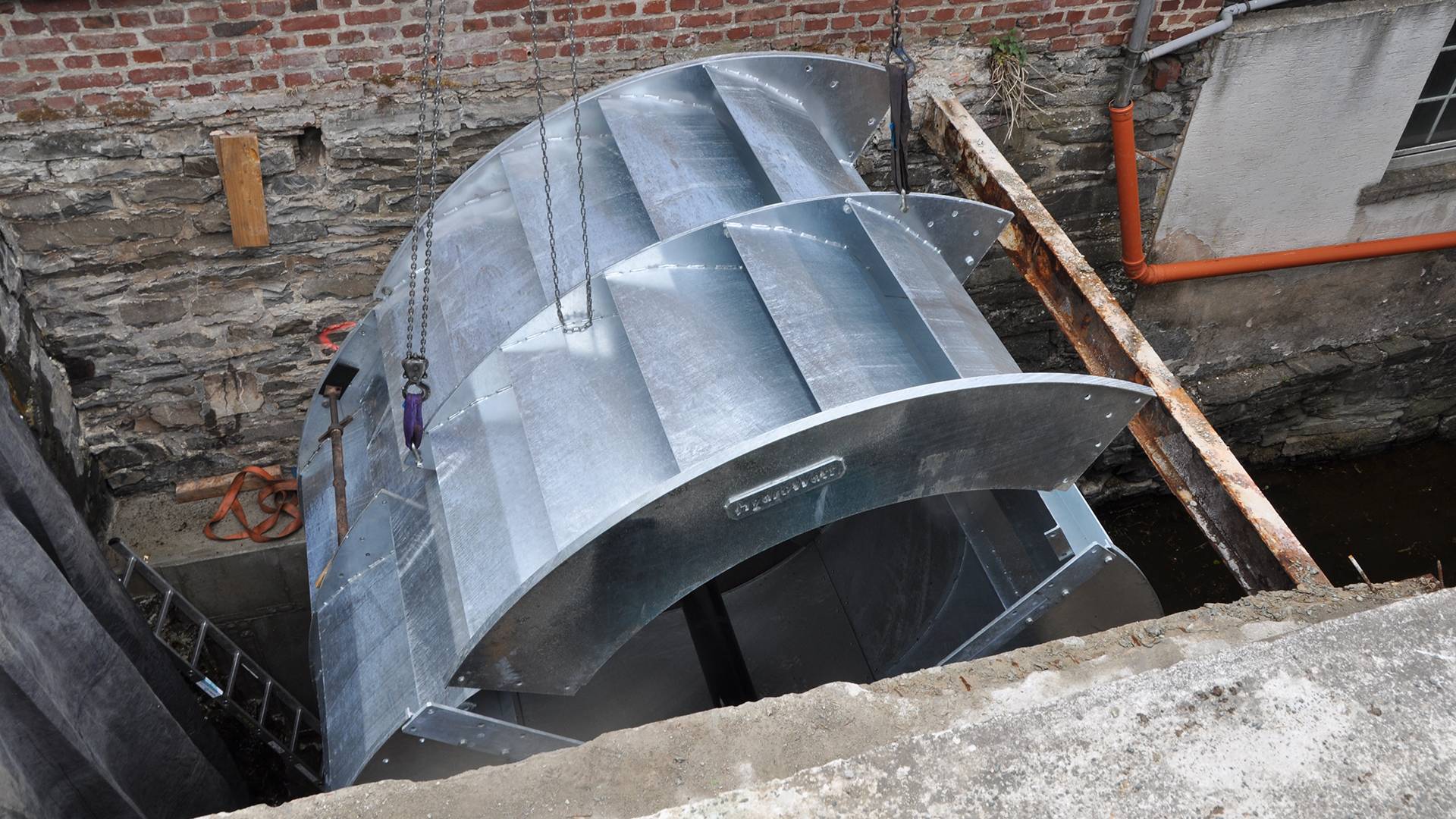 Dann war es soweit: Das Wasserrad drehte sich! Nach einigen Monaten des Lernens und Optimierungsarbeiten erzeugt das Rad die vorher avisierten kWatt Strom.